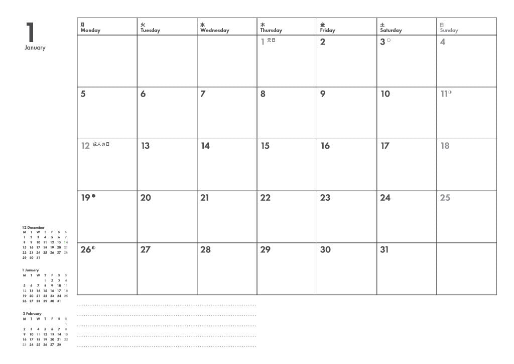 ~ワークページ(PurposeWork、YearVision、Lifevision、Yearcompass)、Monthlyページ(月のテーマ設定、月の振返りページ含む)、Weeklyページ(バーチカルページ、ジャーナルページ)、1年の振り返り、未来のへの申し送りページなど